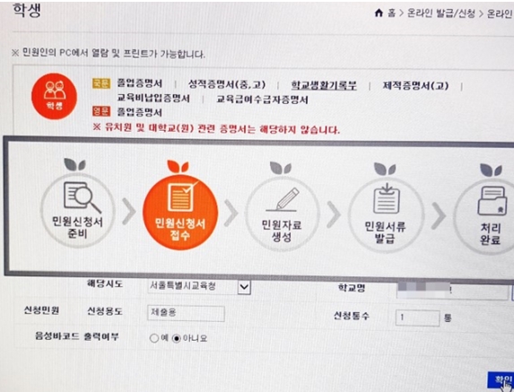 인터넷으로 고교생활기록부를 발급하는 방식이지만