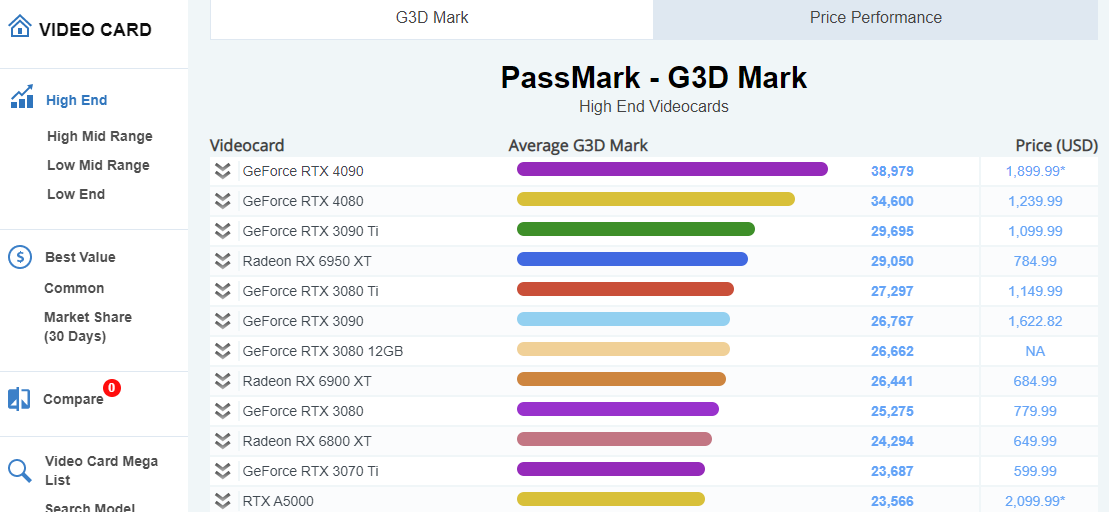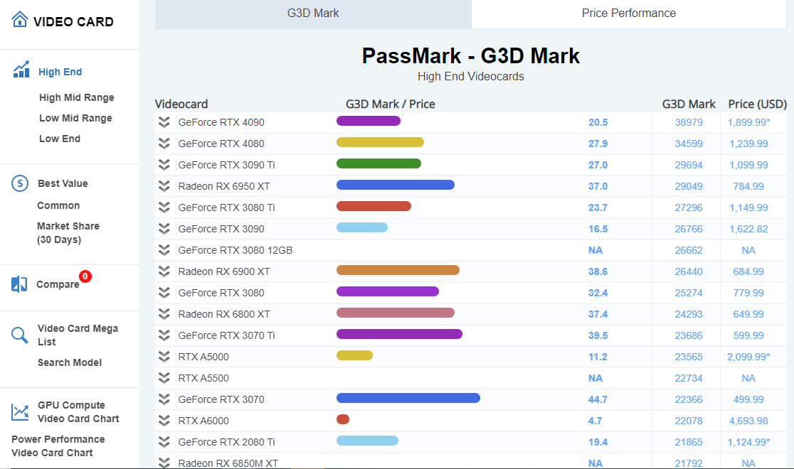 그래픽 카드 순위는 벤치마크 성능 점수와 비용 효율성을 기준으로 결정됩니다.