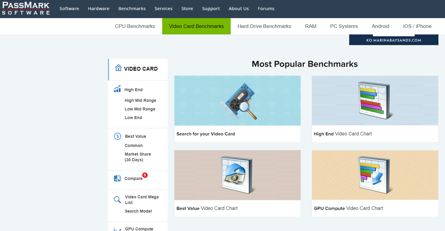 벤치마크 탭을 선택한 다음 비디오 카드 벤치마크를 찾아 그래픽 카드 성능 순위를 확인하시면 됩니다.