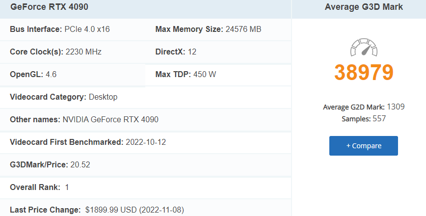 RTX 4000 출시 전 최고의 그래픽 카드였던 RTX 3090 Ti(3위)와 비교하면