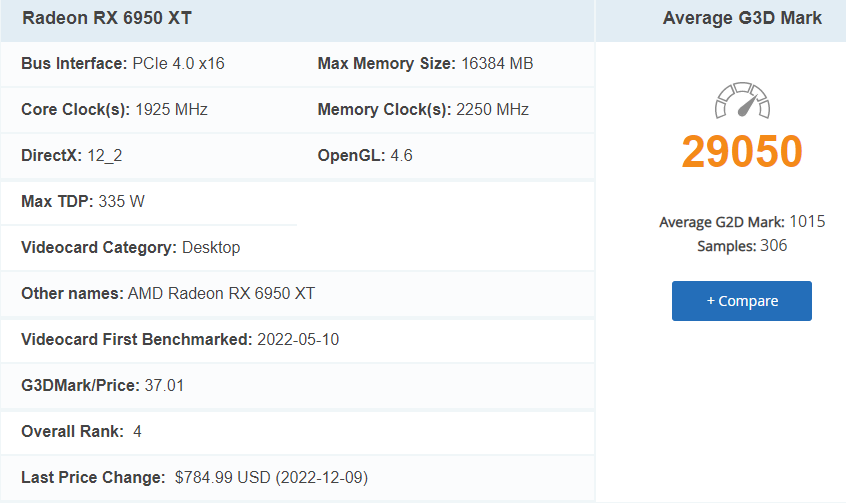 벤치마크 점수/가격 수치에서 4위인 라데온 RX 6950 XT 그래픽 카드의 점수가 약간 더 높습니다.