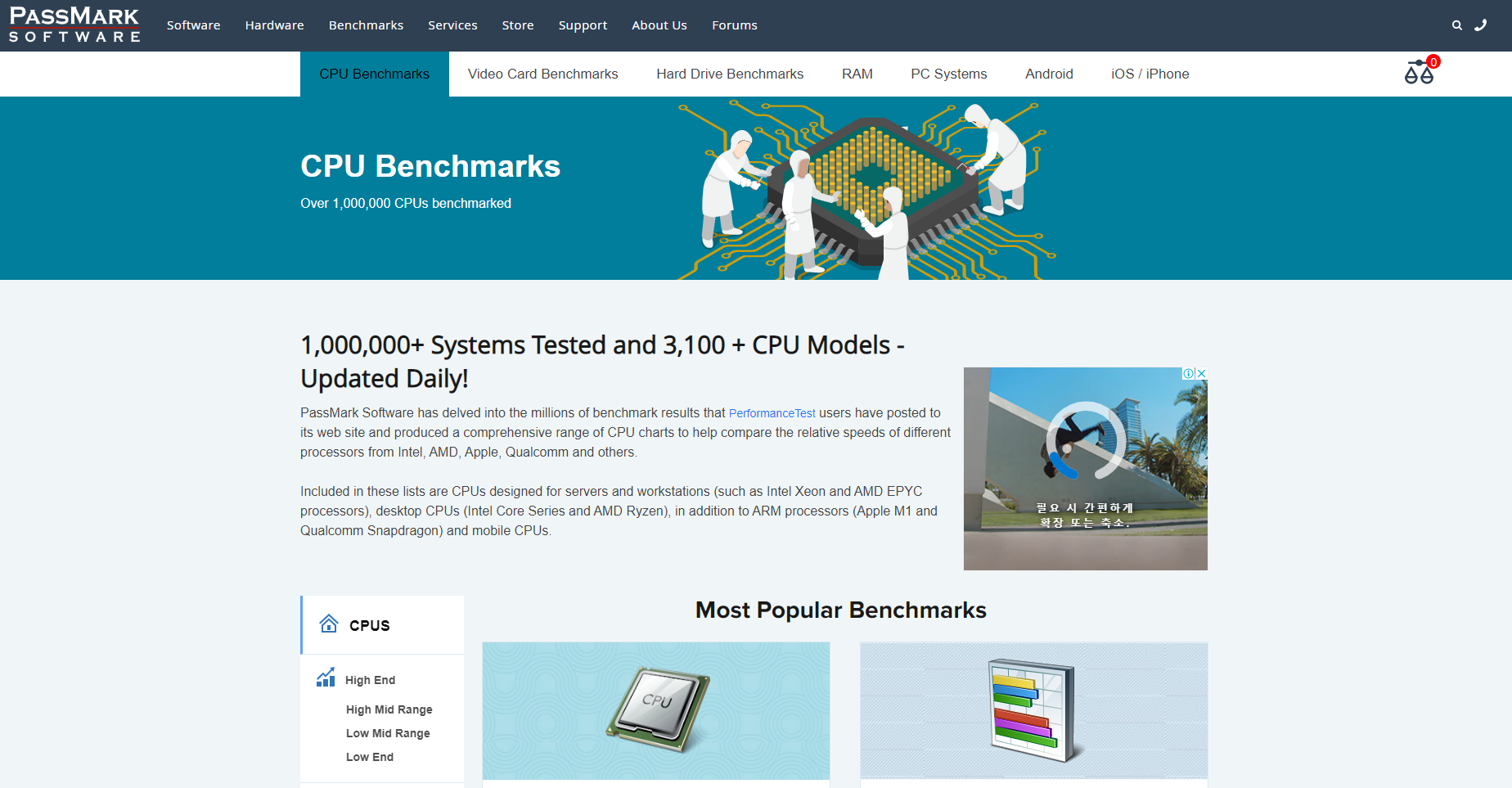 벤치마크 탭을 선택한 다음 비디오 카드 벤치마크를 찾아 그래픽 카드 성능 순위를 확인하시면 됩니다.
