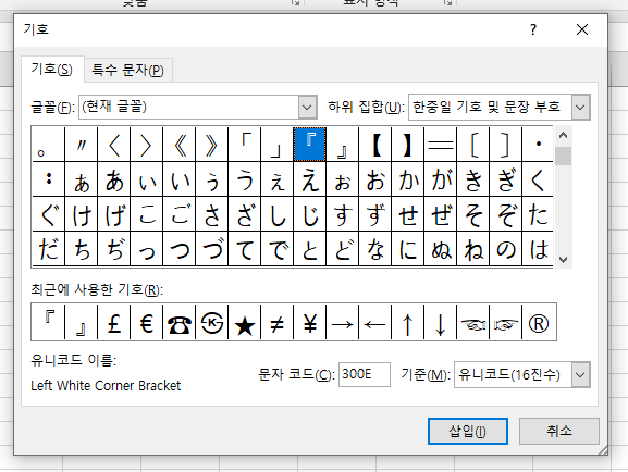 특수 문자 바로 가기를 alt + 5로 설정해서 누르면 기호 기능이 즉시 실행됩니다.