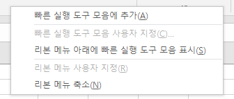 빠른 실행 도구 모음 사용자 지정이라는 메뉴가 나옵니다.