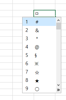 위,아래 화살표로 이동하여 원하는 특수문자를 쓰시면 됩니다.